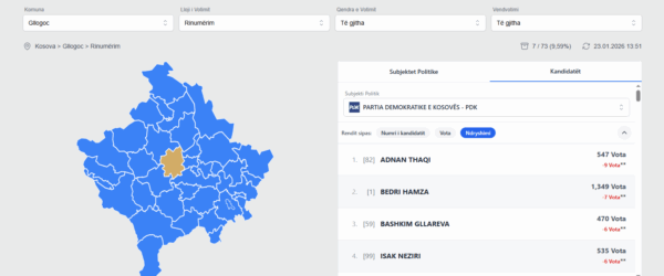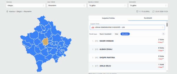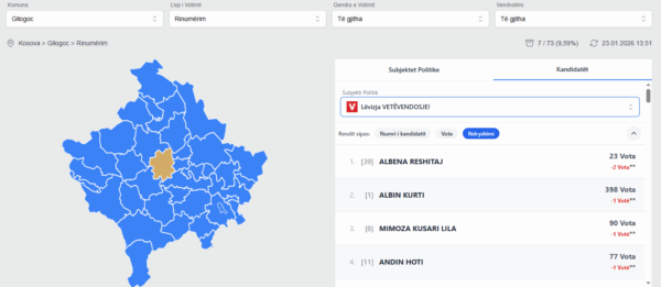 Reultatet e plota mund t’i gjeni në këtë link të KQZ-së: https://resultsparliamentary2025.kqz-ks.org/crc?municipality=19&voteType=1&votingStation=0&pollingClass=0#candidates
