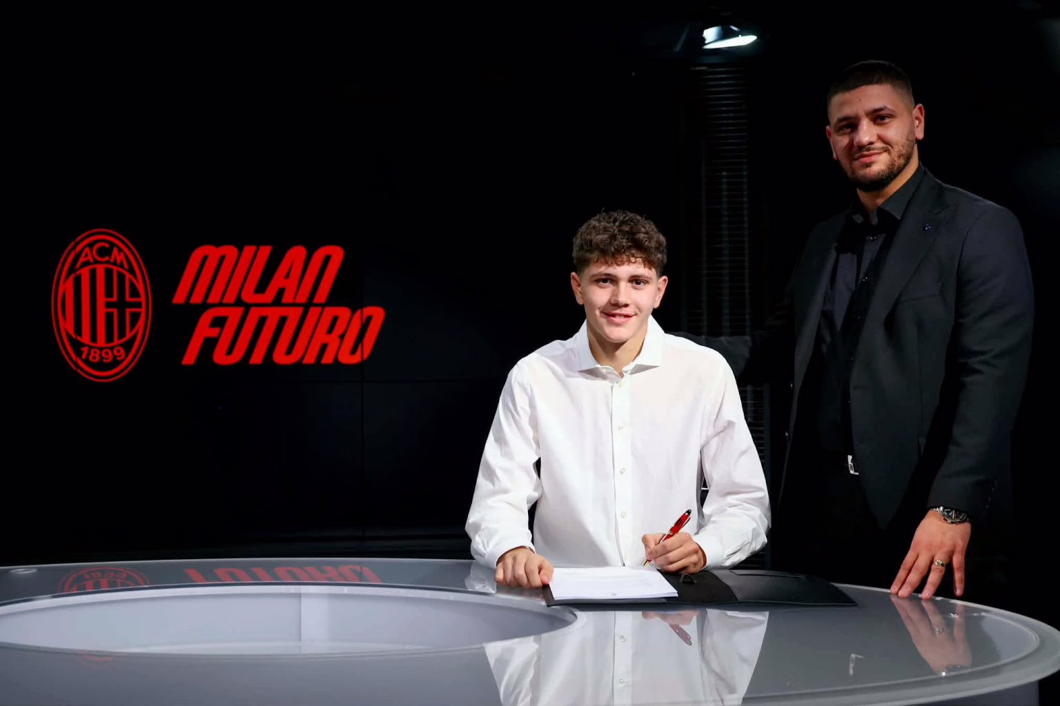 Ceremonia e prezantimit është zhvilluar në ambientet zyrtare të klubit në Milano, ku Aron Babaj është shfaqur për herë të parë duke firmosur për klubin kuqezi të Milanit, duke u fotografuar përpara kamerave me një buzëqeshje që reflekton krenari dhe besim për të ardhmen.
